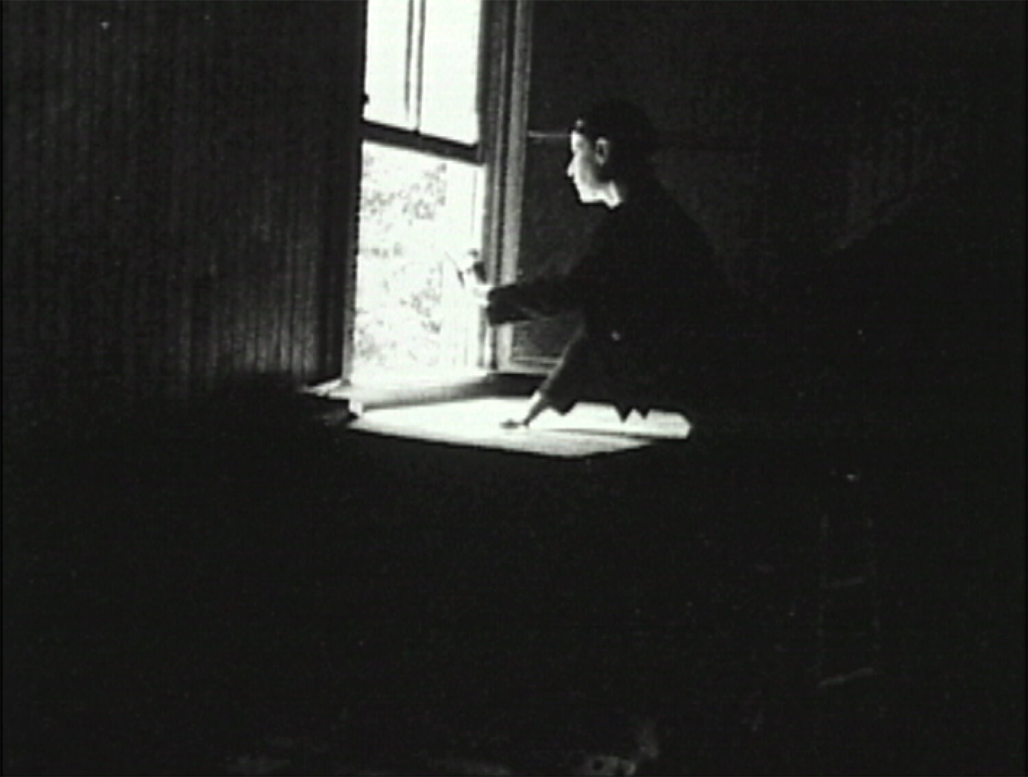“Dream-like video piece that includes interspersed choreographed scenes of a single female dancer moving about a dark room filled with suspended, swinging, mirrored strips. Among the scenes, all in slow motion, are: a gymnast swinging, winter forest shots, a young woman in and around a swimming pool, a party, burning wood floating down a stream (accompanied by spoken Norwegian), and sailors sleeping in a small boat. Throughout are interspersed scenes of birds at rest and in flight in an aviary. The loose story concerns a young man and his visions (real and dreamt) of the young woman from the pool. It ends with the man meeting the woman in a city scene. Overall, it is a melancholic mood piece that deals with themes of constraint and freedom.”