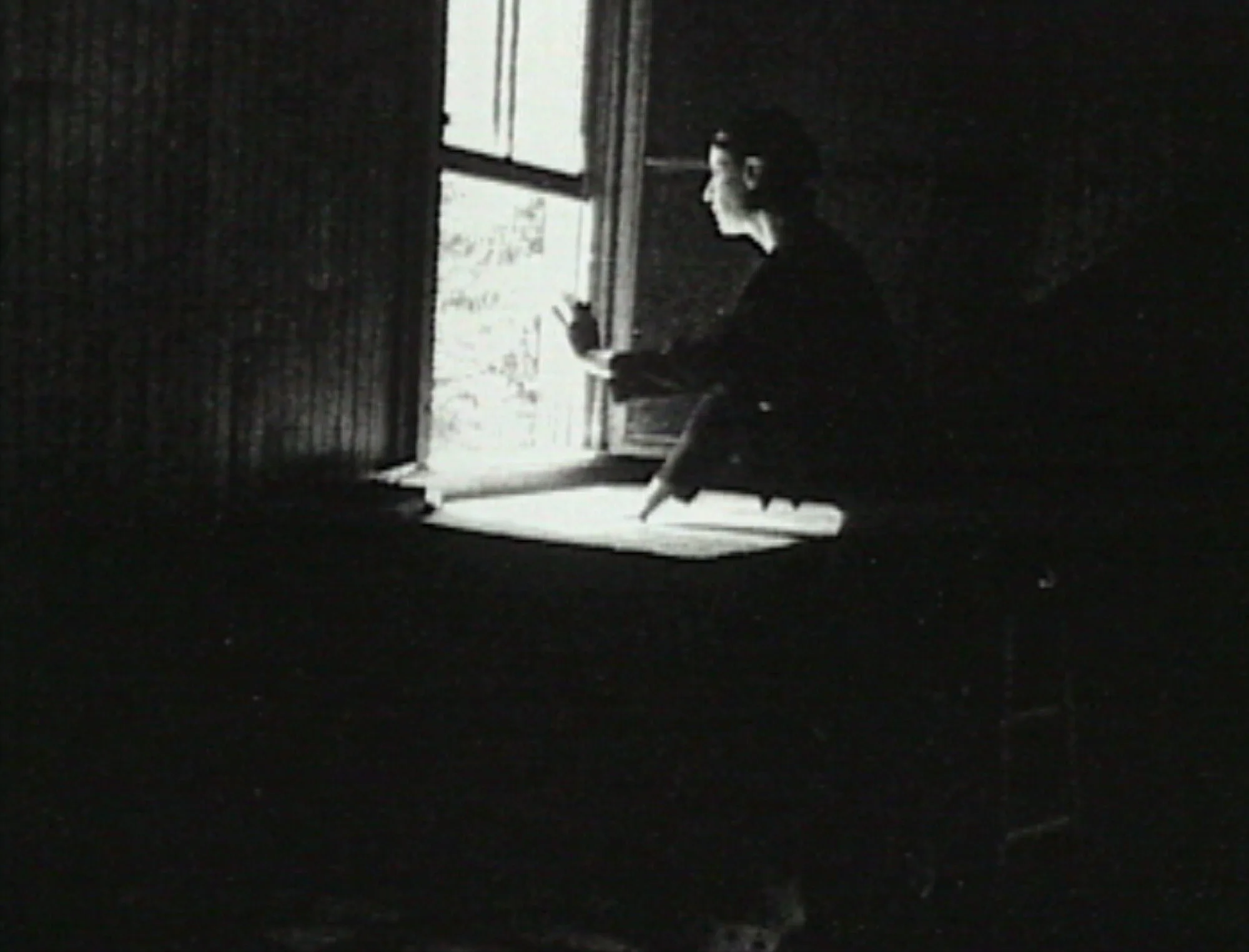 “Dream-like video piece that includes interspersed choreographed scenes of a single female dancer moving about a dark room filled with suspended, swinging, mirrored strips. Among the scenes, all in slow motion, are: a gymnast swinging, winter forest shots, a young woman in and around a swimming pool, a party, burning wood floating down a stream (accompanied by spoken Norwegian), and sailors sleeping in a small boat. Throughout are interspersed scenes of birds at rest and in flight in an aviary. The loose story concerns a young man and his visions (real and dreamt) of the young woman from the pool. It ends with the man meeting the woman in a city scene. Overall, it is a melancholic mood piece that deals with themes of constraint and freedom.”