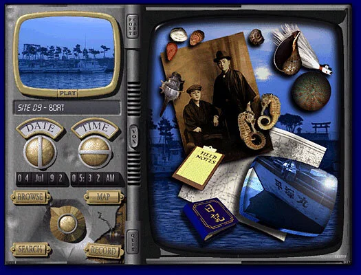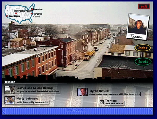 The user finds a PDA on the street filled with a professor’s video recordings voiced by actor George Takei. The PDA (personal digital assistant) design pre-dates broad use of video cameras in mobile devices by some six years. The user’s quest is to reconstruct the Professor’s journey. In addition to language tools and cultural information, the documentary probes what it means to have multiple heritages. Awarded Best in Show, MacWorld Expo, Boston