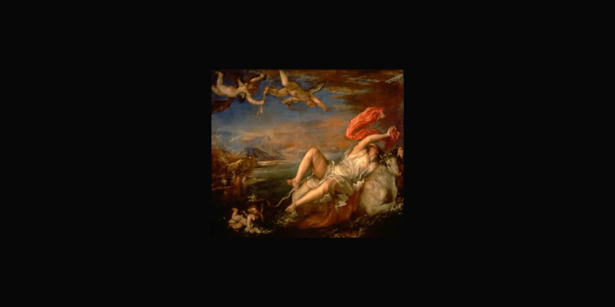 One of twenty silent videos that emanate from points on Titian’s “Europa” to illuminate his masterpiece in the Titian Kiosk